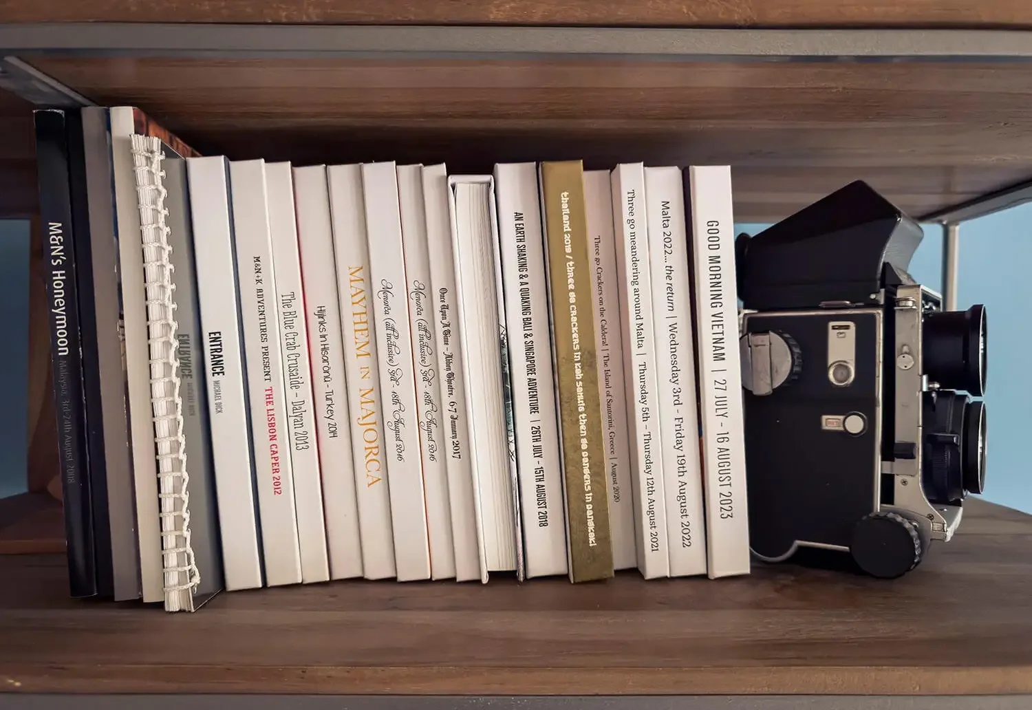These are some of my most prized possessions. Photobooks that tell many stories of travel and adventures.
